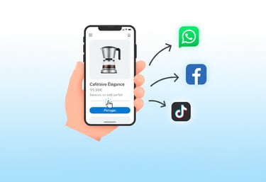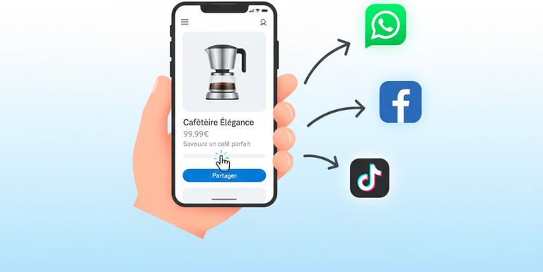 Poste les fiches produits sur WhatsApp, Facebook ou TikTok facilement.